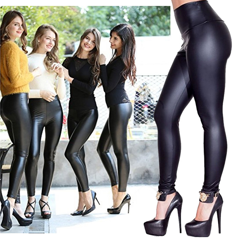 Women Wet Look Stretchy Leather Pants Skinny Leggings Push Up | Get Image Full HD